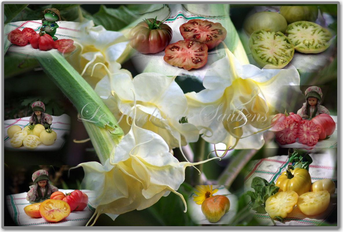 C’est au jardin de Saubens, petit village de Midi-Pyrénées surplombant la Garonne que je me suis passionné pour ces deux plantes, pour lesquelles j’ai délaissé les vivaces, les arbres rares et les arbustes ainsi que les palmiers que j'ai longtemps semé. A présent je cultive les tomates et les Brugmansias jusqu’au bout de mon chemin. Même si depuis peu j'ai décidé de ralentir la culture des tomates pour consacrer plus de temps aux Brugmansias. Comment choisissons-nous telle ou telle plante, je ne le sais pas, pour ma part c'est arrivé petit à petit. Pour les tomates c’est venu naturellement au fil des ans, comme beaucoup de jardiniers j’ai planté les variétés que je pouvais dénicher par-ci, par-là. C'était la noire de Crimée et la rose de Berne, la Cœur de Bœuf, la Grosse Espagnole Lisse... et aussi la tomate "jaune" il y a plus de quarante cinq ans de cela, depuis je sais qu’elle porte un nom. Lorsque j'ai commencé à garder les graines, internet n'était qu'à son balbutiement et il était compliqué de trouver de nouvelles variétés.